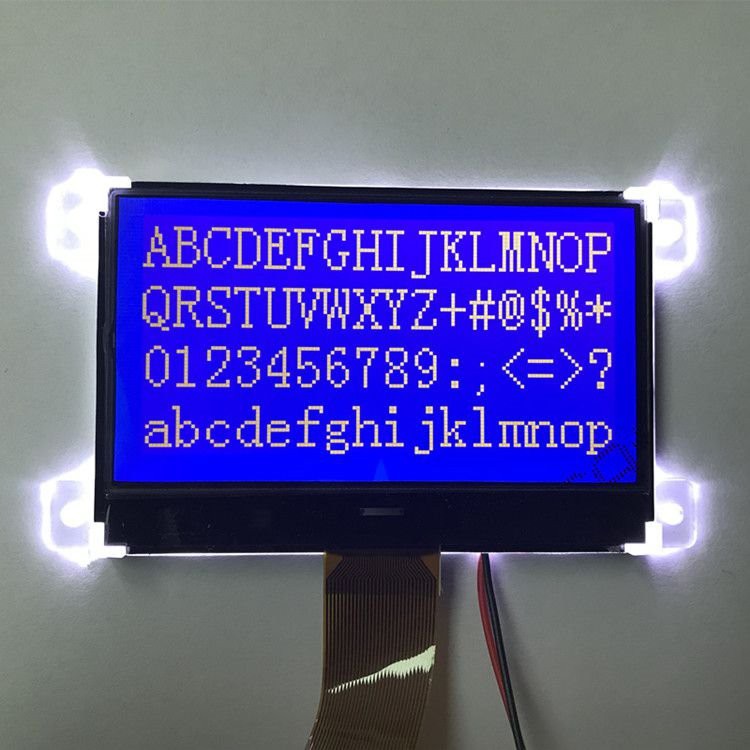 Lub LCD npo module rau tej thaj chaw deb intercom yog 2.8 nti xiav graphic lcd nrog 128x64 pixels, dawb cim ntawm xiav tom qab, STN, Transmissive LCD, ST7565R maub los, 4 pcs dawb coj backlight, FPC connector, nti ntawm lub khob.